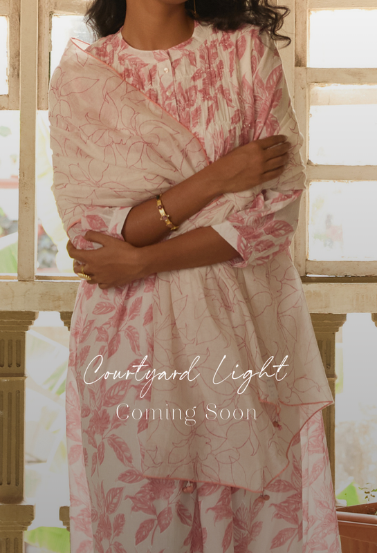 Indulge is breezy, jewel-toned organza sarees with silver detailing. Easy elegance for transitional seasons and intimate occasions.